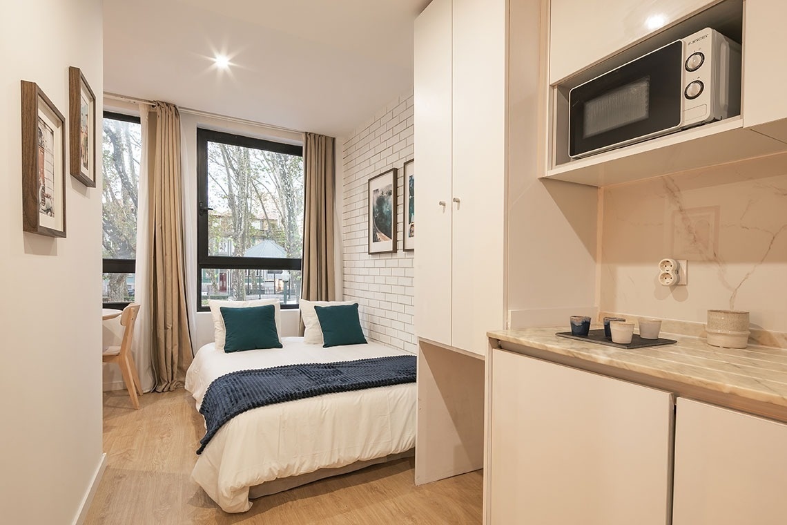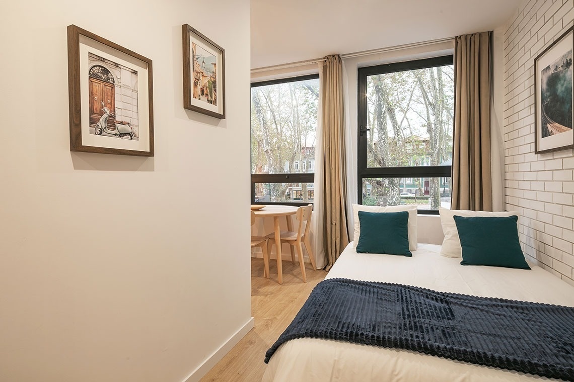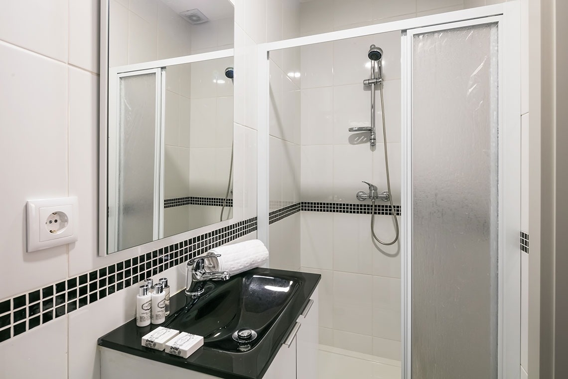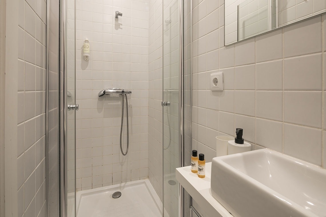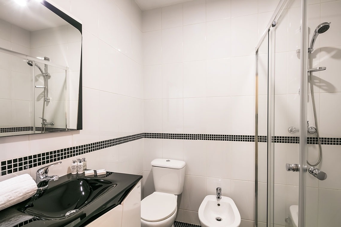 Apartamento com 2 suites espaçosas, cada uma com casa de banho privada: uma com banheira, outra com duche. Uma das suites está equipada com duas camas individuais. Área total de 100m². Ideal para quem procura conforto e privacidade no coração do Porto.